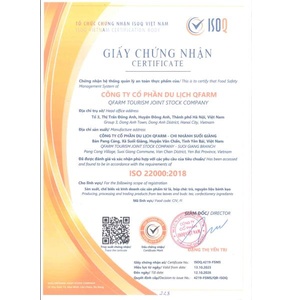 Cơ sở đạt chứng nhận hệ thống quản lý an toàn thực phẩm ISO 22000-2018.